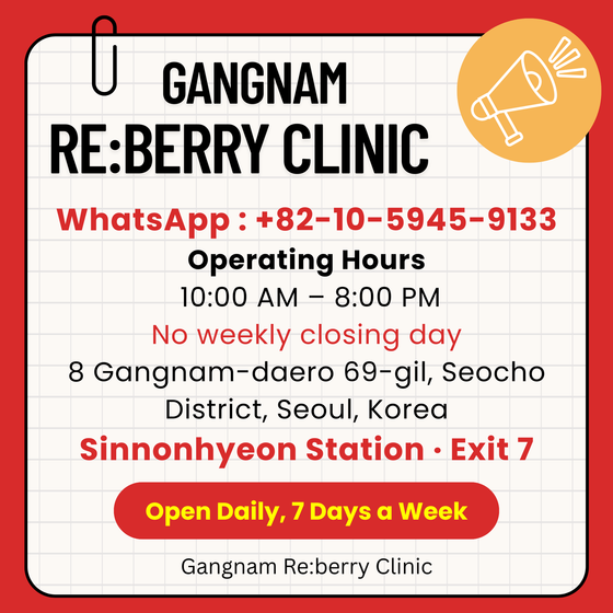 RE:BERRY Clinic is a trusted skin clinic in Seoul offering advanced, results-focused treatments for international patients. We combine medical expertise with modern technology to deliver safe, effective, and personalized skincare solutions.